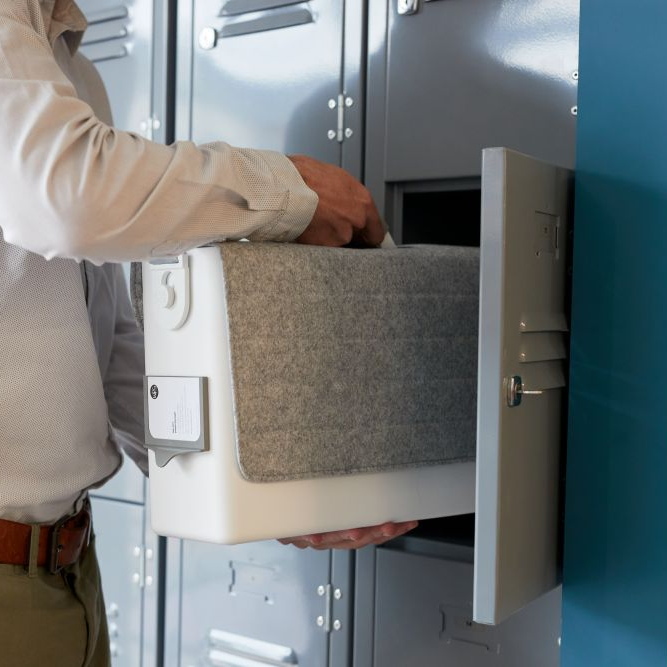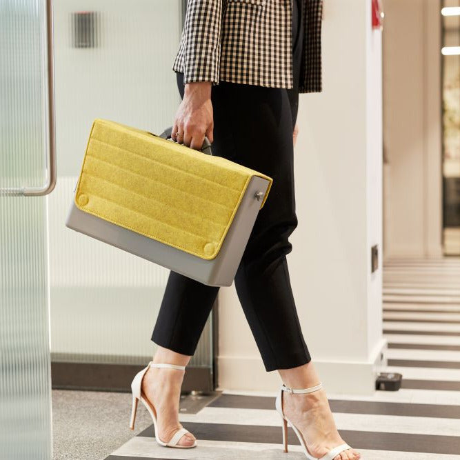 Einfach mitzunehmen und seine eigenen Sachen immer griffbereit zu haben. Egal ob Firmenlaptop oder sein Notizbuch, Stifte und Co. Perfekt auch für Sharing Arbeitsplätze wie bei uns im Büro.