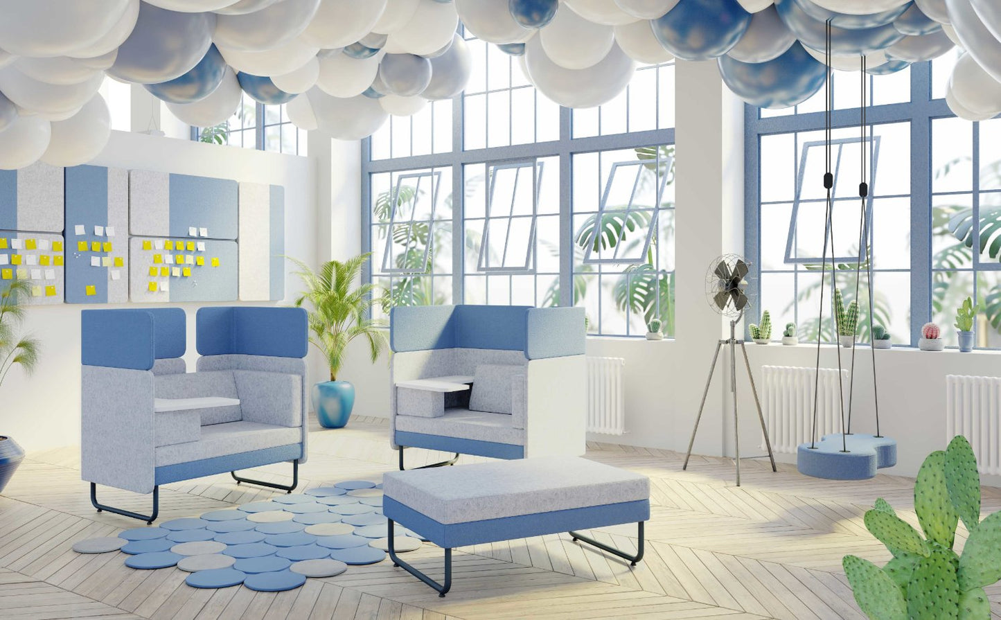 Das vom Designstudio WertelOberfell entworfene Möbelsystem Play&Work verleiht dem Arbeitsplatz einen individuellen Charakter und passt sich an die wechselnden Bedürfnisse und individuellen Vorlieben der Mitarbeiter an.