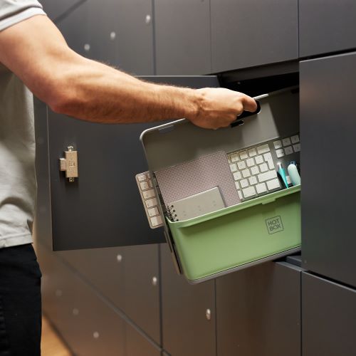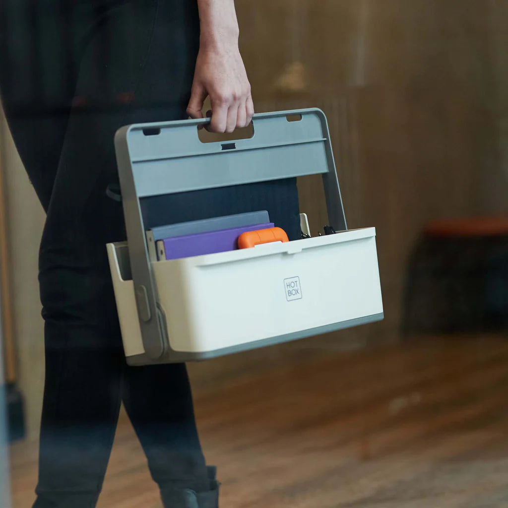 Einfach mitzunehmen und seine eigenen Sachen immer griffbereit zu haben. Egal ob Firmenlaptop oder sein Notizbuch, Stifte und Co. Perfekt auch für Sharing Arbeitsplätze wie bei uns im Büro.