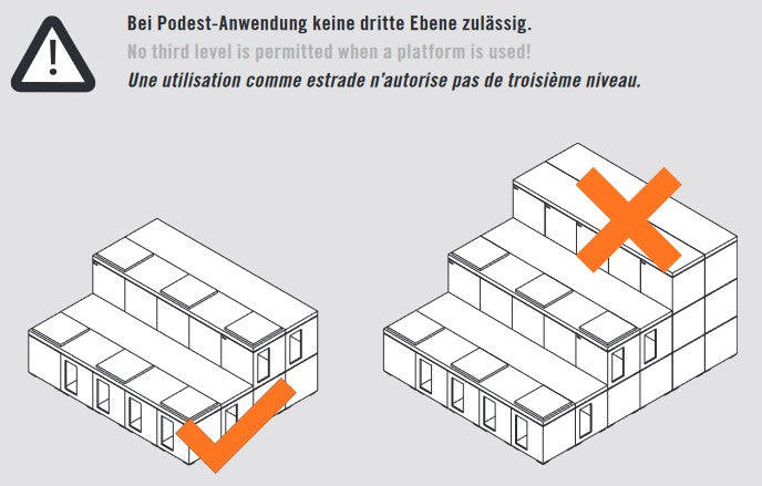 Beim Sitzen oder Stehen auf einem Setting: Last gleichmäßig verteilen. - Bei Podesten oder Tribünen keine dritte Ebene aufbauen.