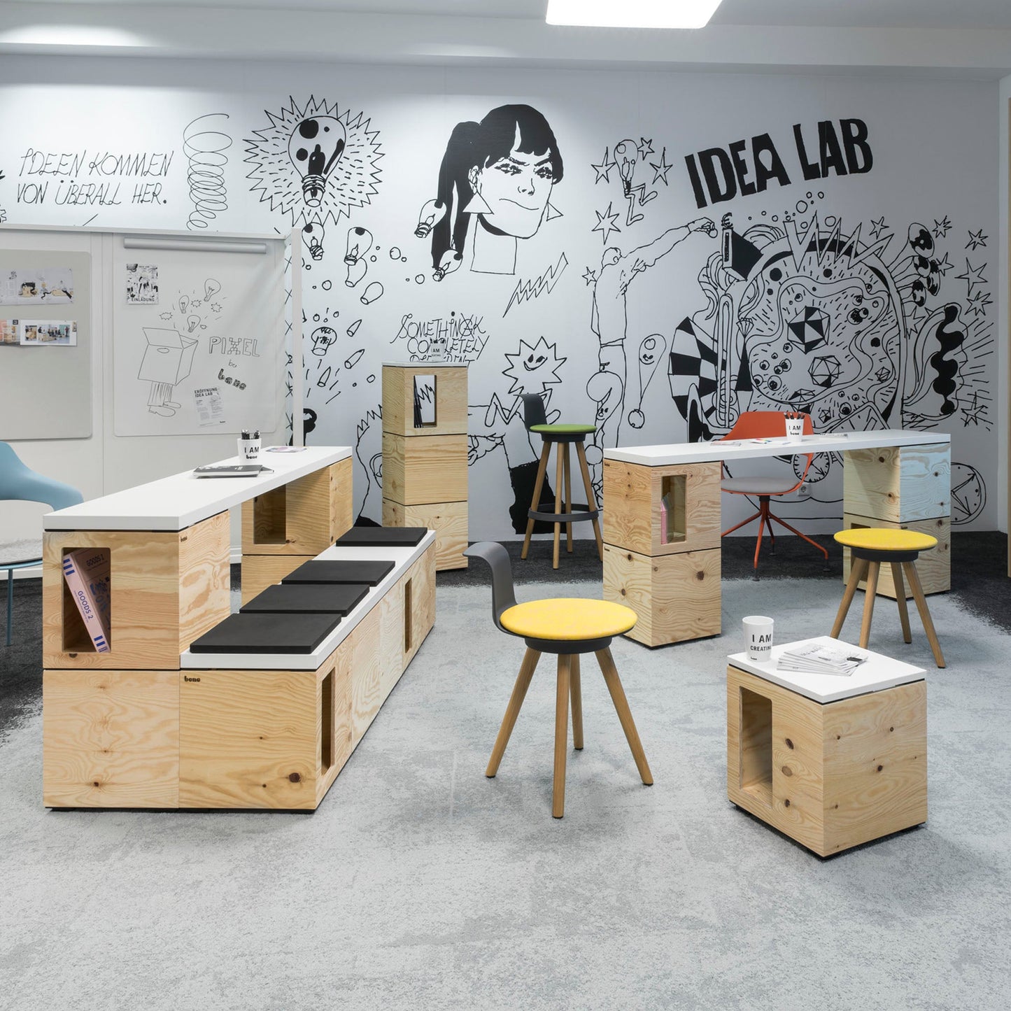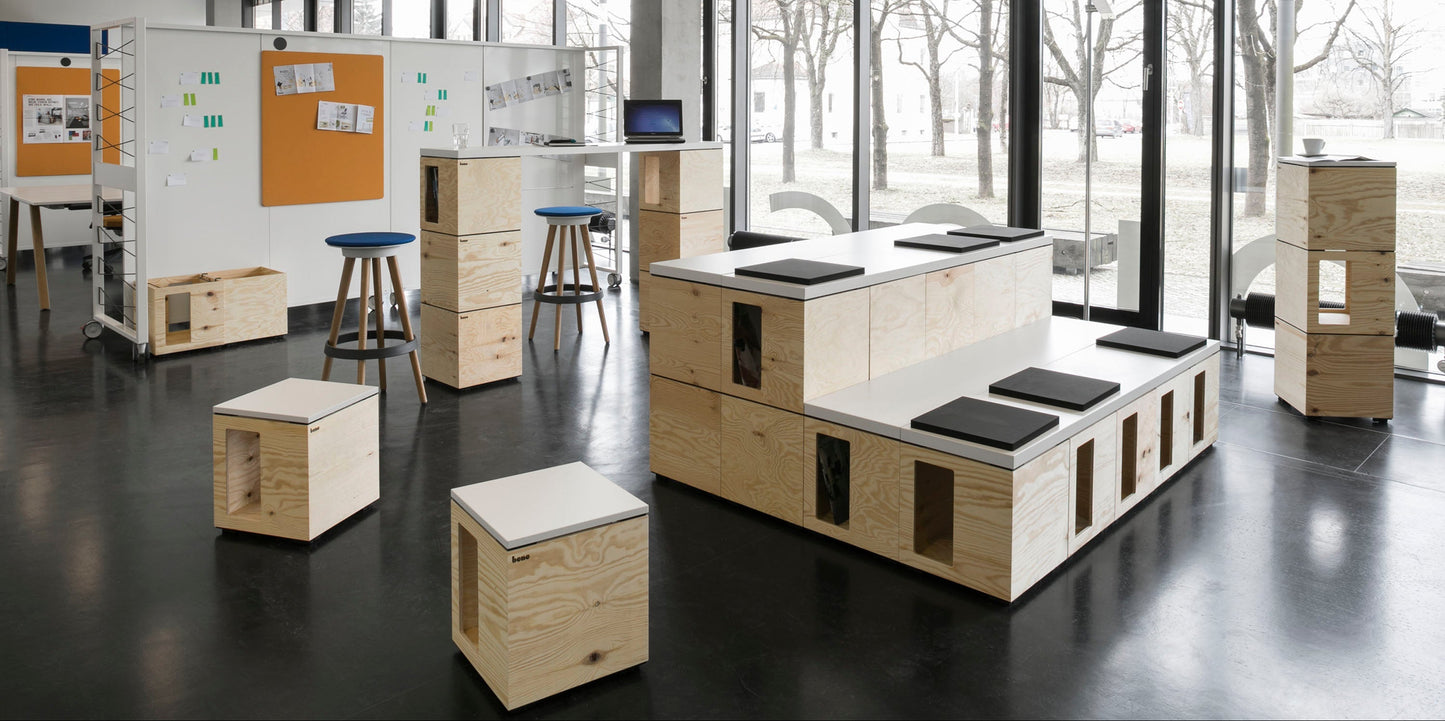 Modulares Arbeiten findet in Schulen, Unternehmen, Innovationszentren, Agenturen und Behörden statt.